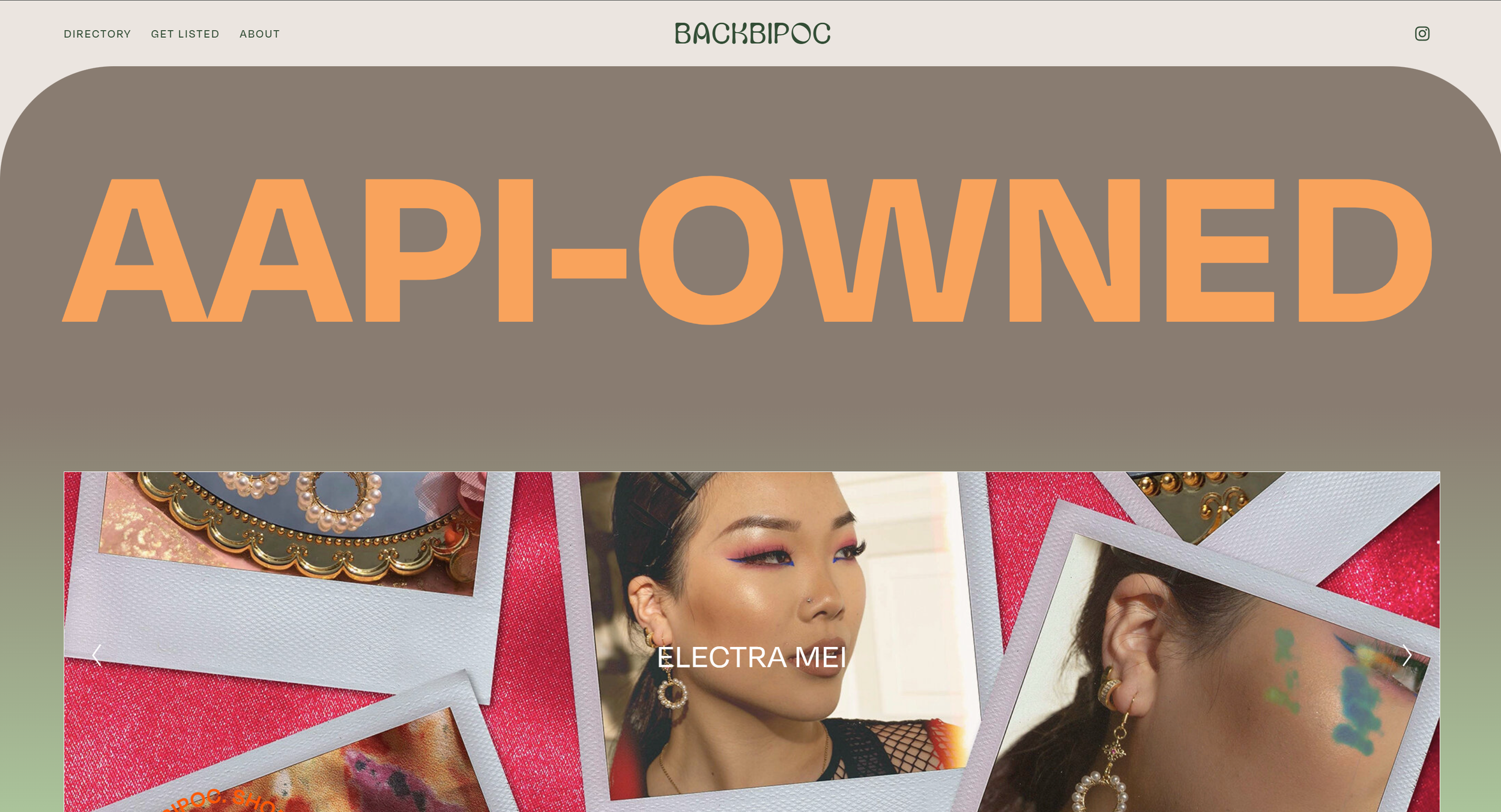 Previously, the backBIPOC brand colors featured a warm beige as the main color and a bright orange as an accent color. I still wanted to keep those colors in the visual identity of the brand refresh, but I softened them up a little to a soft orange and a cooler-toned cream to make the full colors easier on the eyes and prevent clashing with the mix of featured brands' photos.