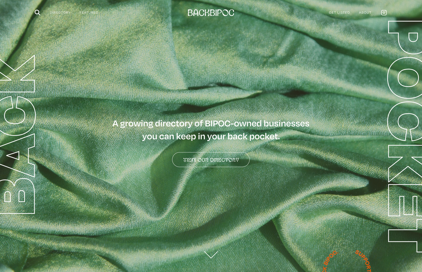 You'll still see the original bright orange as an accent on the new site, like in this circular text that was also a design element on the original backBIPOC website.